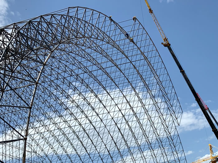 (2)网架加工前应对现场尺寸进行复测,确认无误后方可进行加工、安装;网架制作、运输、安装应遵守《空间网格结构技术规程》JGJ7-2010、《钢网架开远螺栓球节点》JG/T 10-2009、《钢网架开远螺栓球节点用高强度螺栓》 GB/T 16939-2016、《开远钢结构开远工程开远施工规范》 GB50755-2012、《开远钢结构开远工程施工质量验收标准》 GB50205-2020。